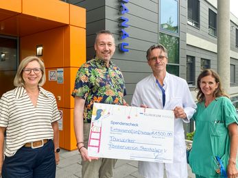 Die erste Vorsitzende des Fördervereins, Christina Sünder-Kühn und Martina Buschbeck vom Vorstand, sowie Chefarzt Dr. med. Winfried Krill nahmen den Scheck mit großer Freude entgegen. Dr. med. Winfried Krill, Chefarzt der Klinik für Kinder- und Jugendmedizin, betonte nochmal, wie wichtig solche Spenden sind: „Jeder Euro hilft uns, die Versorgung und Betreuung unserer jungen Patientinnen und Patienten weiter zu verbessern.“ Mit dem Geld können jetzt wieder neue Anschaffungen für die Klinik für Kinder- und Jugendmedizin realisiert werden. Beispielsweise wurde Anfang des Jahres ein neuer Spielplatz auf dem Klinikgelände für die Patientinnen und Patienten der Klinik für Kinder- und Jugendmedizin und deren Geschwister fertiggestellt, der etwas Ablenkung vom Klinikaufenthalt bringen soll.