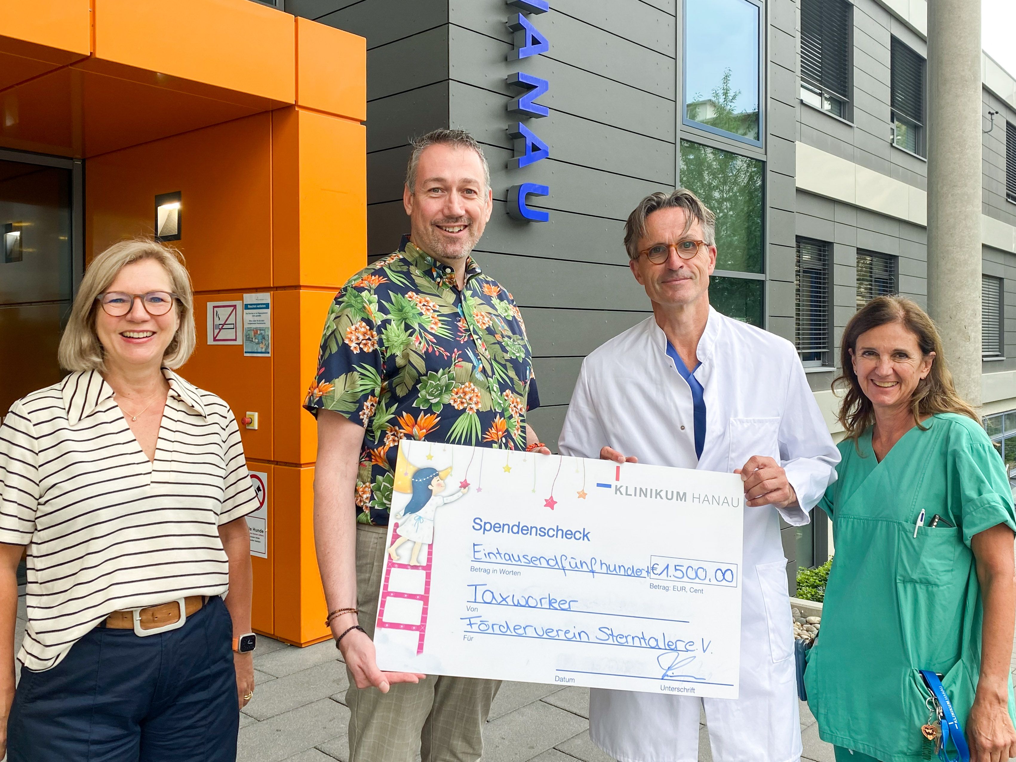 „Unser 15-jähriges Jubiläum ist ein besonderer Meilenstein für uns, und wir wollten diesen Moment nutzen, um etwas zurückzugeben. Die Arbeit des Fördervereins Sterntaler e.V. ist von großem Wert für die Kinder und Jugendlichen in unserer Region, gerade in Momenten, wenn es Ihnen nicht gut geht. Wir sind stolz darauf, einen kleinen Teil dazu beitragen zu können“, sagt Marc Thimm, Geschäftsführer der Taxworker GmbH & Co. KG Steuerberatungsgesellschaft aus Erlensee, als er seinen großen Spendenscheck in Höhe von 1.500 Euro an das Team des Fördervereins Sterntaler e.V. im Klinikum Hanau übergab.