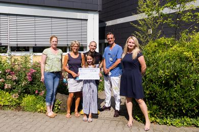 Hanau, 18. August 2021. Zu seinem 30-jährigen Bestehen in der Gesellschaftsform einer GmbH wollte der TÜV Hessen gern etwas zurückgeben und hat deshalb seine Mitarbeiterinnen und Mitarbeiter dazu aufgefordert, ihre Herzensprojekte, die Unterstützung verdient haben, vorzuschlagen. Aus allen Einreichungen wurden dann 30 gemeinnützige Organisationen ausgewählt, an die TÜV Hessen eine Gesamtsumme von 30.000 Euro gespendet hat. Eine der ausgewählten Einrichtungen war der Förderverein Sterntaler e.V. und im speziellen das Zentrum für Kinderdiabetes am Klinikum Hanau. TÜV-Mitarbeiterin Justyna Anna Mendes Pissarreira ist mit ihrer Tochter Laura regelmäßig zur Behandlung der jungen Patientin vor Ort, und kennt daher die Arbeit des Zentrums aus erster Hand. Weil sie sich mit ihrer Tochter dort so gut aufgehoben fühlt, hat sie die Kinderdiabetesambulanz auch bei den Herzensprojekten vorgeschlagen und jetzt zusammen mit Laura einen Scheck in Höhe von 1.000 Euro beim Team der Kinderklinik vorbeigebracht. Besonders der leitende Oberarzt der Klinik für Kinder- und Jugendmedizin, Semik Khodaverdi, der Laura und ihre Mama von den vierteljährlichen Kontrollbesuchen in der Diabetesambulanz schon gut kennt, freute sich über die Spende und bedankte sich herzlich für das Engagement.