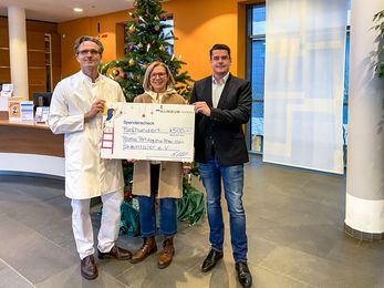 Obwohl die am Hanauer Hafen ansässige Rhenus Port Logistics Rhein-Main GmbH & Co. KG ein international agierendes Logistik-Unternehmen ist, wollen Geschäftsführung und die Mitarbeitenden auch etwas an die Standortregion zurückgeben. Deshalb tritt Geschäftsführer Sebastian Ebert den rund zwei Kilometer langen Weg ins Klinikum Hanau kurz vor Weihnachten gern an, um im Namen aller Mitarbeitenden des Unternehmens, einen Spendenscheck in Höhe von 500 Euro an den Förderverein Sterntaler e.V. und somit an die Klinik für Kinder- und Jugendmedizin des Klinikums vorbeizubringen. Die zweite Vorsitzende des Fördervereins, Martina Buschbeck, sowie der Chefarzt der Klinik für Kinder- und Jugendmedizin, Dr. med. Winfried Krill nahmen den Scheck mit großer Freude entgegen.