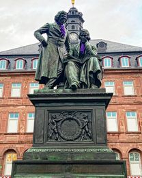 Wer am heutigen Donnerstag am Brüder-Grimm-Denkmal am Hanauer Marktplatz vorbeikommt, wundert sich wahrscheinlich über das neue modische Accessoire der beiden Brüder. Passend zur kalten Jahreszeit tragen Jacob und Wilhelm nämlich einen schicken lila Schal. Und warum Lila? Hintergrund ist der Internationale Welt-Frühgeborenen-Tag, der jedes Jahr am 17. November begangen wird und unter dem Motto „Purple for Preemies“ auf die Belange der Kleinsten der Kleinen und ihren Familien aufmerksam machen soll. Normalerweise werden an diesem Tag verschiedene Wahrzeichen in knalligem Lila angestrahlt, auch Hanau hat sich schon öfter an der Aktion beteiligt und unter anderem das Schloss Philippsruhe und das Goldschmiedehaus lila leuchten lassen. Aufgrund der anhaltenden Energiekrise hat sich der Förderverein Sterntaler und das Team des Eltern-Kind-Zentrums am Klinikum Hanau in diesem Jahr aber gegen eine Beleuchtung entschieden und neue Wege gesucht, um die Aktion in die Brüder-Grimm-Stadt zu bringen. Neben dem Schal für die Brüder Grimm wurden am Marktplatz und am Klinikum auch lila Fahnen gehisst und das Team informierte an einem kleinen Infostand auf dem Marktplatz Interessierte über die besondere Bedeutung des Tages.