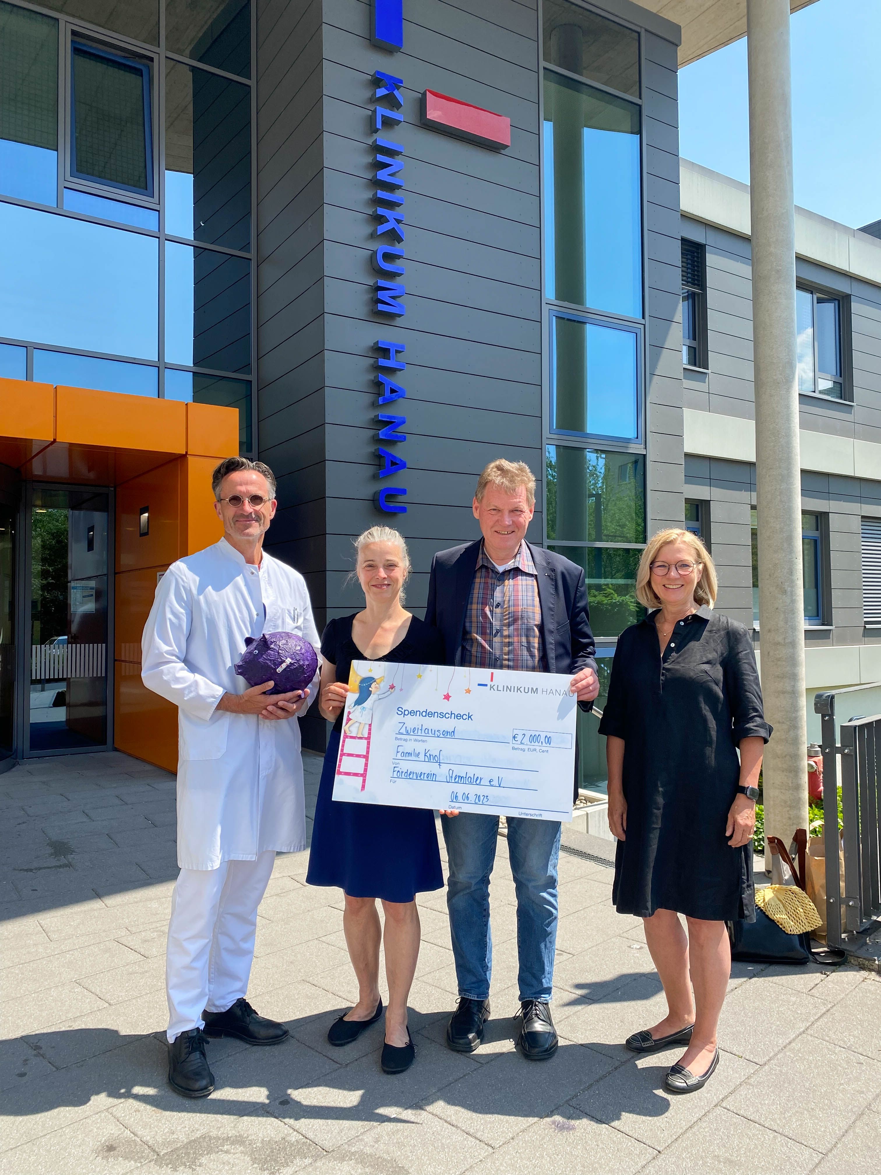 Hanau, 22. Juni 2023. Zum Geburtstag wird normalerweise der Jubilar von seinen Gästen beschenkt, anders war es dieses Jahr auf der Feier von Dr. Ritva und Dr. Wolfgang Knof. Die beiden Unternehmer hatten nämlich einen ganz besonderen Geburtstagswunsch: Spenden für einen guten Zweck. Das kam auch bei ihren Gästen gut an, die den Spendentopf mit 2.000 Euro füllten. Über die großzügige Spende durfte sich jetzt der Förderverein Sterntaler e. V. und somit die Klinik für Kinder- und Jugendmedizin freuen.