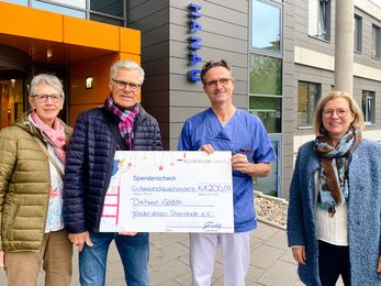 Die zweite Vorsitzende des Fördervereins, Martina Buschbeck vom Vorstand, sowie der Chefarzt der Klinik für Kinder- und Jugendmedizin, Dr. med. Winfried Krill nahmen den Scheck mit großer Freude entgegen. Dr. med. Winfried Krill betonte nochmal, wie wichtig solche Spenden für die Klinik sind: „Solche Spendenaktionen sind für uns von unschätzbarem Wert. Sie ermöglichen es uns, weiterhin gezielt dort zu helfen, wo es am dringendsten benötigt wird. Deshalb bedanken wir uns herzlich bei Herrn Gödde und seinen Gästen für ihre Großzügigkeit.“ Mit dem Geld können jetzt wieder neue Anschaffungen für die Klinik für Kinder- und Jugendmedizin realisiert werden. Beispielsweise wurde Anfang des Jahres ein neuer Spielplatz auf dem Klinikgelände für die Patientinnen und Patienten der Klinik für Kinder- und Jugendmedizin und deren Geschwister fertiggestellt, der etwas Ablenkung vom Klinikaufenthalt bringen soll.