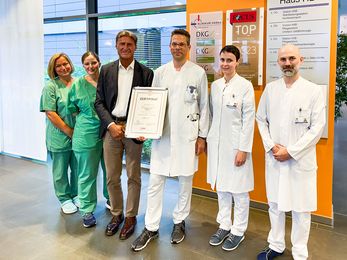 Und eine weitere, besondere Herausforderung barg dieser Zertifizierungsprozess: er fand vollständig online statt. Die Zertifizierung zum Vorhofflimmerzentrum wurde von der DGK während der Corona-Pandemie neu etabliert und wird deshalb nur digital durchgeführt. Statt eines Rundgangs vor Ort, um Räumlichkeiten, Ausstattung und Prozesse vorzustellen, wurde die Abteilung in einem virtuellen Rundgang per Video gezeigt und notwendige Angaben und dazugehörige Dokumente über ein Online-Portal den Auditoren im Vorfeld zur Verfügung gestellt. Am Tag der eigentlichen Zertifizierung wurde dann alles nochmal gemeinsam besprochen und etablierte Prozesse von den Auditoren hinterfragt. „Wir konnten bei der Zertifizierung unter Beweis stellen, dass die Behandlung bei uns nach dem aktuellen Stand der Wissenschaft erfolgt, unsere Experten auch im Falle einer Komplikation genau wissen, was zu tun ist, und wir über den Eingriff hinaus die Patienten nicht allein lassen, sondern in einer strukturierten Nachsorge begleiten“, erklärt der Geschäftsführer des Klinikums, Volkmar Bölke. Und auch die Auditoren hoben in ihrem Urteil besonders die gute Organisation und Struktur der noch jungen Klinik für Rhythmologie hervor – die Abteilung wurde erst Anfang 2020 am Klinikum Hanau etabliert.