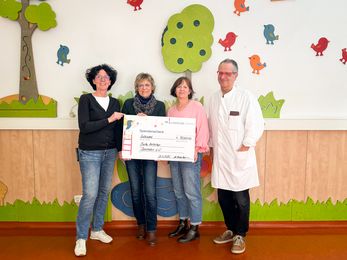 Die Spende wurde von Cornelia Urbach, Leitung der neonatologischen Intensivstation und Claudia Müller, pflegerische Leitung der pädiatrischen Allgemeinstation entgegengenommen. Beide sind Vorstandsmitglieder des Fördervereins. Auch Dr. med. Bernhard Bungert, Chefarzt der Klinik für Kinder- und Jugendmedizin, bedankte sich herzlich für die großzügige Unterstützung.