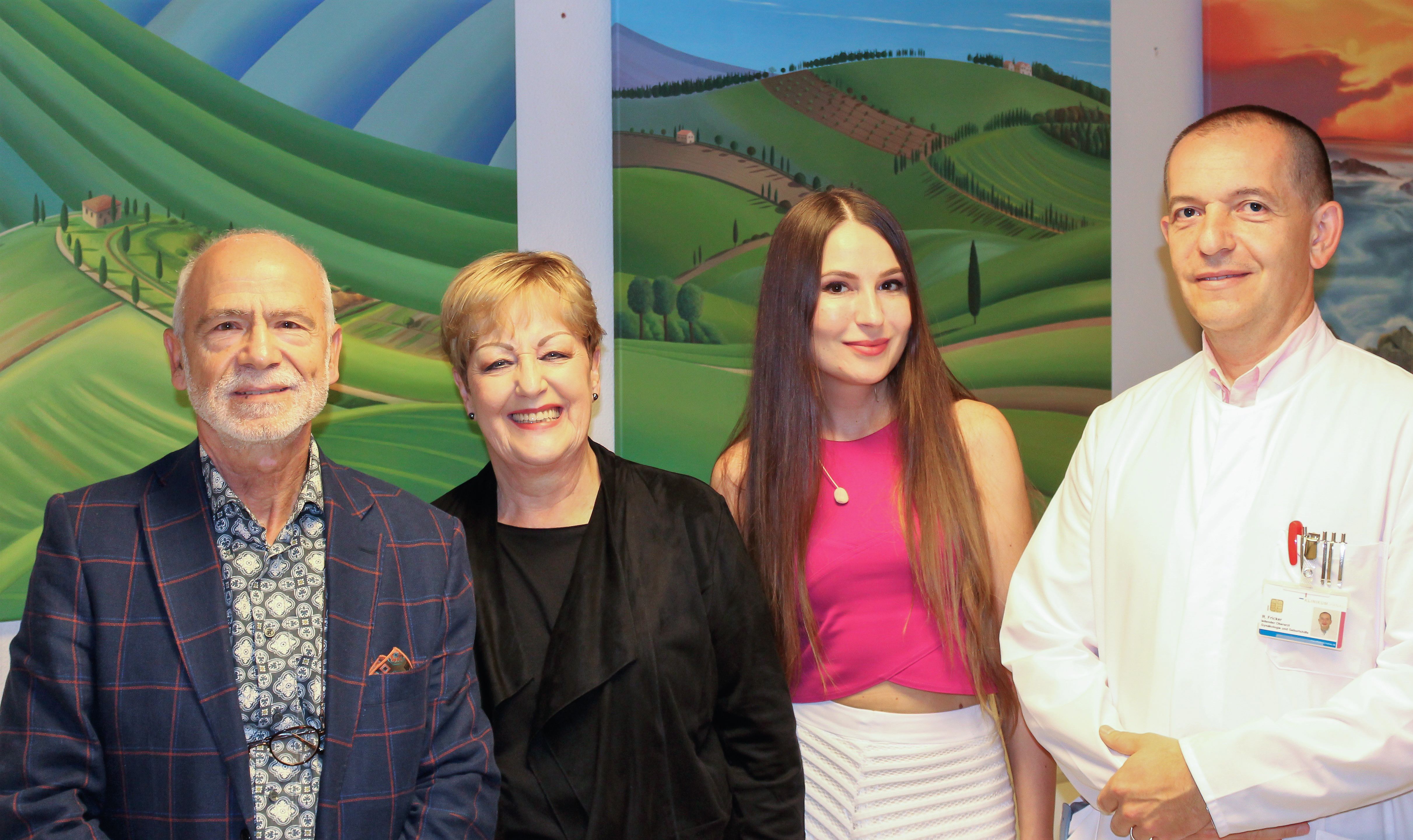 Hanau, 29 August 2019. Auch mit Kunstausstellungen setzt man im Hanauer Klinikum Akzente: Jetzt eröffnete Roland Fricker, leitender Oberarzt der Klinik für Gynäkologie und Geburtshilfe, stellvertretend für den Chefarzt der Klinik, Prof. Dr. med. Thomas Müller, zusammen mit Beate Funck, Stadtverordnetenvorsteherin und Patientenfürsprecherin am Klinikum, die Ausstellung „Anschauungswelten: Eine Retrospektive von über 40 Jahren“ von Rocco Barone. Musikalisch untermalt wurde die Eröffnung von der Konzert-Gitarristin und Sängerin Yuliya Lonskaya. Die Bilder sind noch bis einschließlich 1. November im Klinikum Hanau zu sehen und werden im Erdgeschoss sowie in der sechsten und zehnten Etage des HC-Gebäudes gezeigt – und zwar täglich in der Zeit von 9 bis 18 Uhr. Neben der Möglichkeit seine Bilder einer breiten Öffentlichkeit zu präsentieren, will der Künstler diese Gelegenheit auch nutzen, um etwas Gutes zu tun und hat sich entschlossen, die Hälfte des Erlöses aus dem Verkauf des ersten Bildes an das Brust- und Gynäkologische Krebszentrum des Klinikums zu spenden.