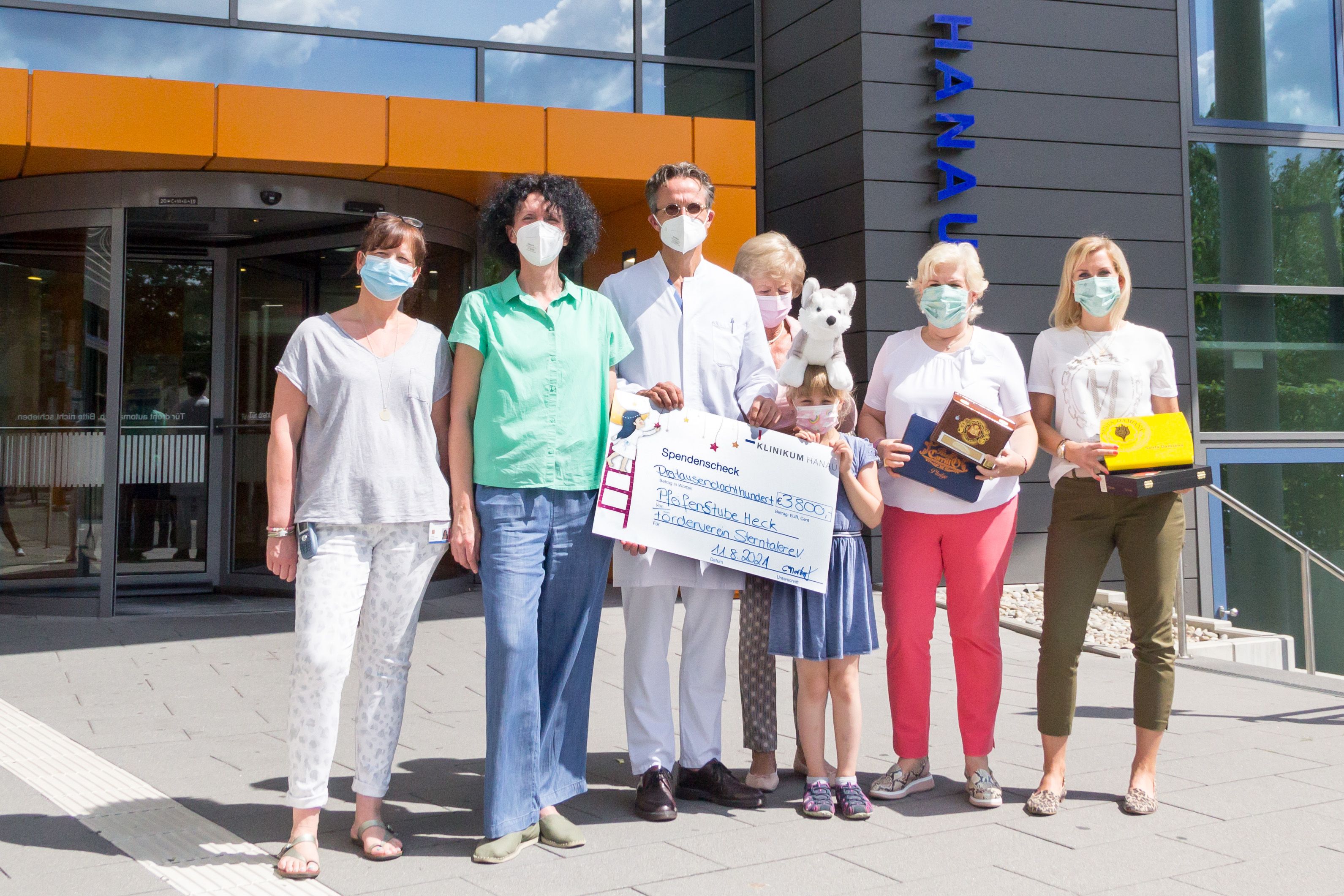 „Ich bin mit Leib und Seele Hanauerin, da will ich auch etwas Gutes für meine Stadt tun“, sagt Gabriele Markert, als sie den großen Scheck über 3.800 Euro an den Förderverein Sterntaler e.V. und das Team der Klinik für Kinder- und Jugendmedizin zusammen mit ihrer Tochter Carina Markert und Enkelin Lara Markert, übergibt. Über zehn Jahre hat die Familie in ihrem Geschäft, der Pfeifen-Stube Heck in der Hanauer Rosenstraße, leere Zigarrenkisten für den guten Zweck verkauft. Jede Kiste kostete 1 Euro, „wenn die Kunden dann aber gehört haben, dass das Geld in eine Spende für eine wohltätige Organisation fließt, hat der ein oder andere gern auch mal mehr bezahlt“, erzählt Carina Markert, die das Geschäft jetzt in der dritten Generation führt. So kam im Laufe der Zeit die stattliche Summe zusammen, der Familienrat hat dann beschlossen, dass das Geld in der Stadt bleiben soll und den Förderverein Sterntaler e.V. ausgewählt.
