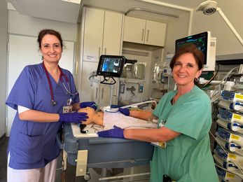 Im Notfall kann es erforderlich sein, dass die Atmung mit einem Beatmungsschlauch gesichert werden muss. Gerade bei den jüngsten Patientinnen und Patienten ist das manchmal eine besondere Herausforderung. Ihre Atemwege sind deutlich kleiner und empfindlicher als bei Erwachsenen, gleichzeitig entscheiden im Notfall oft Sekunden. Die neuen Geräte vom Typ GlideScope des Herstellers Verathon ermöglichen es den Ärztinnen und Ärzten, den Atemweg über eine integrierte Kamera deutlich besser einzusehen und den Beatmungsschlauch auch unter schwierigen Bedingungen sicher zu platzieren.