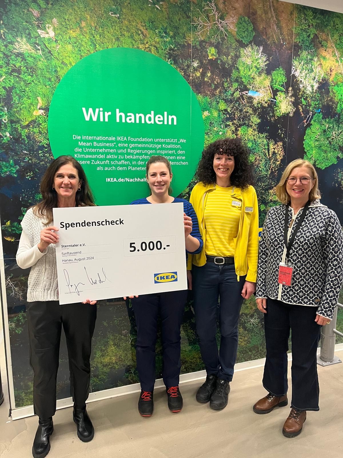Midsommar ist für die Schweden der höchste Feiertag, bei dem sie mit Familien und Freunden den längsten Tag des Jahres und damit das Leben und das Licht feiern. Diesen Festtag wollte das Team des IKEA Einrichtungshaus Hanau dieses Jahr zu etwas Besonderem machen. Für jeden Kunden, der am 22. Juni, dem diesjährigen Midsommardag, bei seinem Einkauf seine IKEA Family Card einsetzte, spendete das Team einen Euro. Den gesammelten Betrag hat das Unternehmen dann nochmal aufgestockt, so kamen jetzt insgesamt 5.000 Euro zusammen. Die stolze Summe haben Tanja Lietz, Local Community Engagement Leader und Shopkeeperin Nicole Wieghardt jetzt stellvertretend für das gesamte Team an die beiden ersten Vorsitzenden des Fördervereins Sterntaler e.V., Christina Sünder-Kühn und Martina Buschbeck, und damit an die Klinik für Kinder- und Jugendmedizin übergeben.