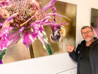 Mit Bienchen und Blümchen in den Kreißsaal: Klinikums-Mitarbeiter Helge Schröder gestaltet den Weg zum Kreißsaal mit Makrofotografien