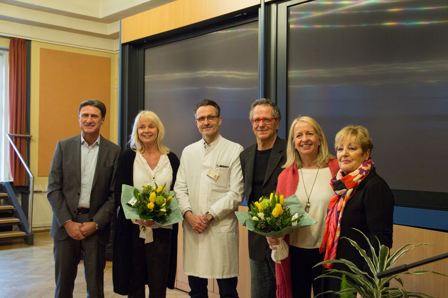 Bildunterschrift: (v.l.n.r) Volkmar Bölke, Geschäftsführer des Klinikums; Martina Wichels, Vorsitzende des Fördervereins Sterntaler e.V.; Dr. med. Winfried Krill, Chefarzt der Klinik für Kinder- und Jugendmedizin; Dr. med. Bernhard Bungert, Sektionsleiter der Neonatologie; Beate Kleemann, Leiterin des Bunten Kreises Hanau; Beate Funck, Stadtverordnetenvorsteherin der Stadt Hanau, bei der Kick-Off-Veranstaltung zum Bunten Kreis Hanau am Freitag, 06. März 2020.