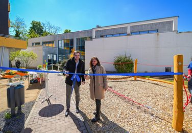 Ein Motorik-Parcour, ein Spielhaus-Tipi, ein Memory-Spiel und ein Nasch- und Duftbeet bereichern seit neuestem das Gelände des Klinikums Hanau zwischen dem Gebäude K, in dem sich die Klinik für Kinder- und Jugendmedizin befindet, und dem Verwaltungsgebäude Z. Die Spielgeräte sind alle Teil des neuen Sterntaler-Gartens, der jetzt feierlich vom Aufsichtsratsvorsitzenden des Klinikums, Bürgermeister Dr. Maximilian Bieri, und Christina Sünder-Kühn, Vorsitzende des Fördervereins Sterntaler, eröffnet wurde. Dort sollen die jungen Patientinnen und Patienten der Kinderklinik, aber auch Geschwisterkinder und Eltern die Möglichkeit haben, sich eine kleine Auszeit vom Klinikalltag zu gönnen. Gleich nach der Eröffnung ließen sich die ersten Kinder die Gelegenheit nicht nehmen, die neuen Geräte direkt auszutesten. Für die Eltern oder Kinder, die mal eine Pause vom Spielen brauchen, stehen außerdem zusätzliche Sitzmöglichkeiten im Garten zur Verfügung.
