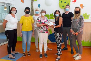 Hanau, 11. August 2020. Bundesverband „Das frühgeborene Kind e.V.“ übergibt die Frühchenpuppe an das Team der Klinik für Kinder- und Jugendmedizin am Klinikum.