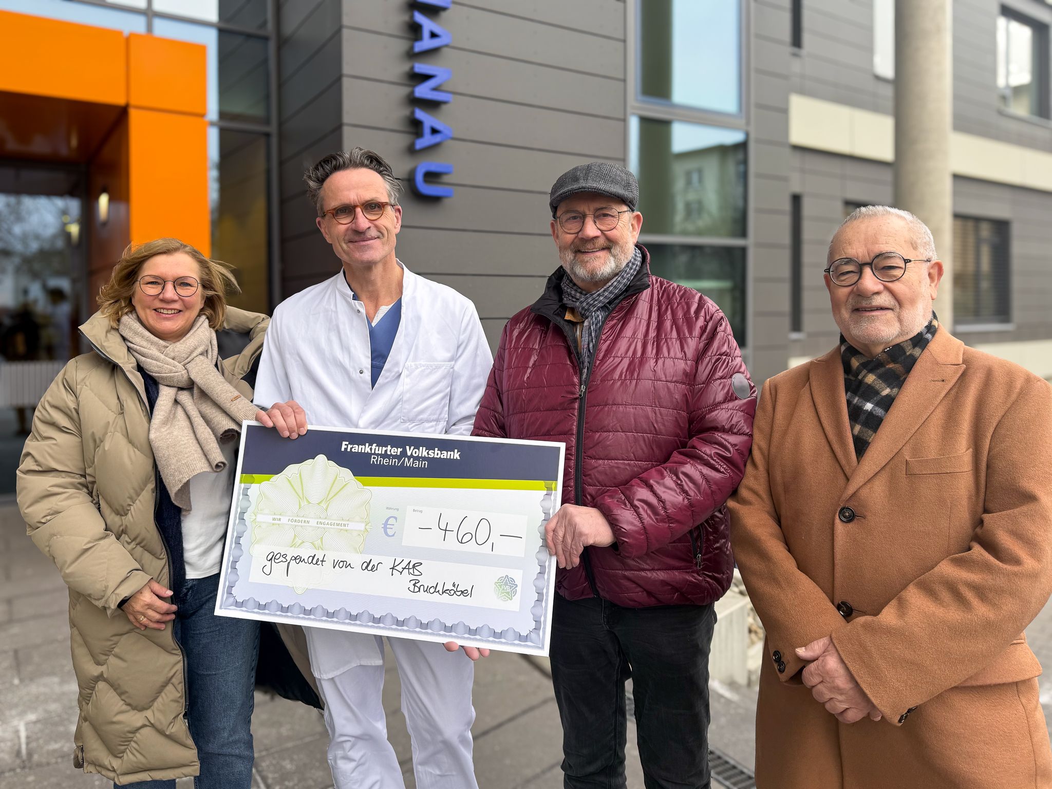 Die Wahl fiel auf den Förderverein Sterntaler e.V. – nicht zuletzt durch eine persönliche Verbindung: Ralf Meister, Mitglied des Vergnügungsausschusses der KAB, engagiert sich selbst bei den Sterntalern. Stellvertretend für die KAB übergaben Klaus-Dieter Koblitz und Wolfgang Then vom Leitungsteam nun einen symbolischen Scheck an Martina Buschbeck, stellvertretende Vorsitzende des Fördervereins, sowie an Dr. med. Winfried Krill, Chefarzt der Klinik für Kinder- und Jugendmedizin am Klinikum Hanau. "Es war uns ein großes Anliegen, unser Jubiläum mit einem sozialen Zeichen zu verbinden", betonte Klaus-Dieter Koblitz bei der Spendenübergabe. "Dass aus einem festlichen Konzert eine konkrete Unterstützung für kranke Kinder geworden ist, freut uns sehr. Dieses Ergebnis zeigt, wie viel entstehen kann, wenn Engagement, Musik und Gemeinschaft zusammenwirken."