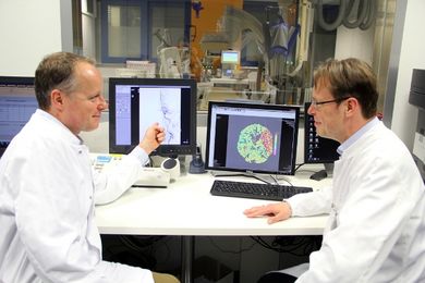 Dr. med. Sven Thonke: Durch immer bessere Diagnostik- und Therapiemethoden können wir zunehmend mehr Patienten wirksam behandeln. Neben der medikamentösen Lysetherapie ermöglichen uns differenzierte Mikrokatheter die Entfernung von Blutgerinnseln aus den Hirngefäßen. Das Klinikum Hanau ist eines von elf hessischen Thrombektomiezentren und die einzige zertifizierte überregionale Stroke Unit im Main-Kinzig-Kreis.