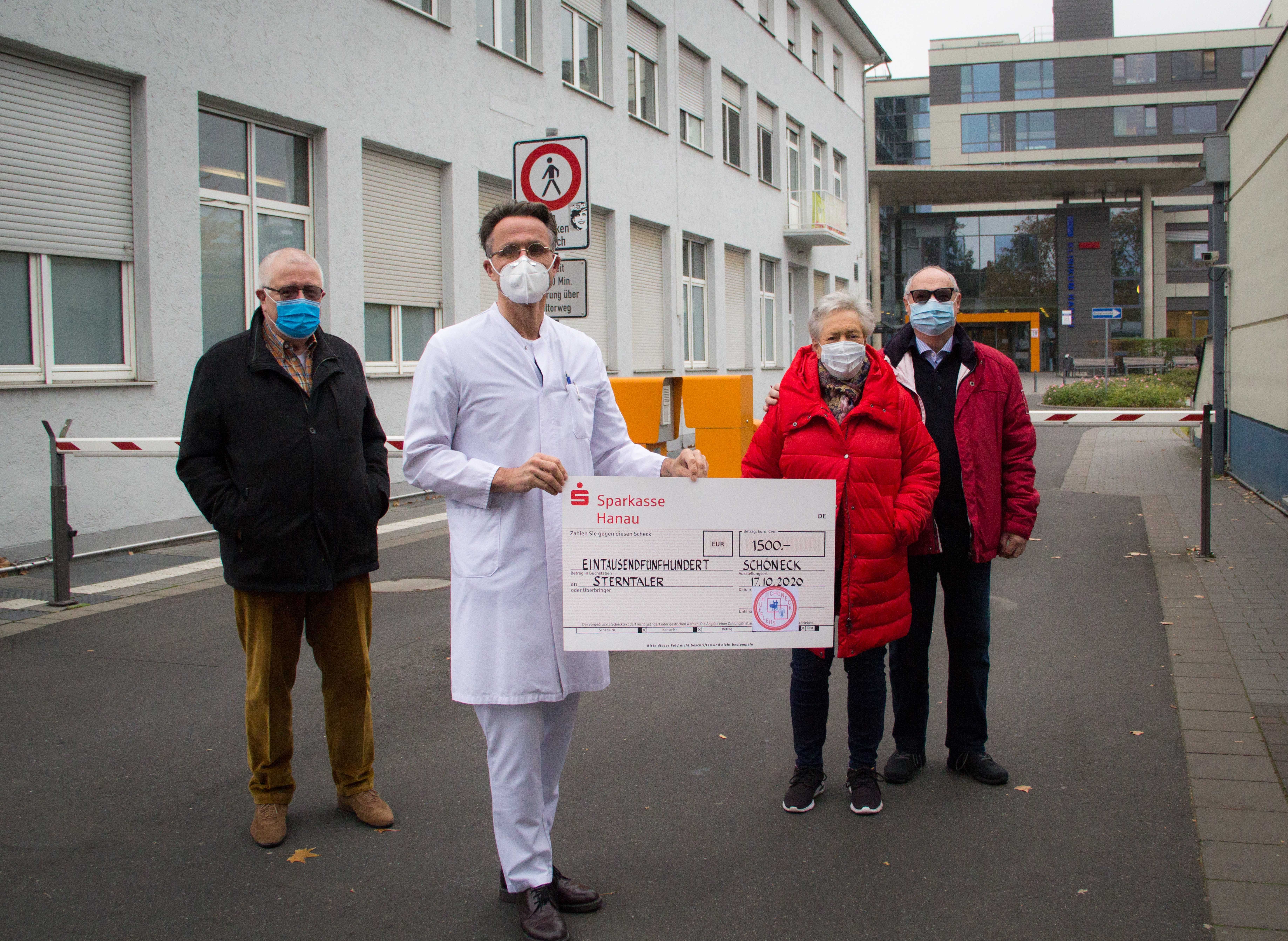 Von Deutschen und Amerikanern im Mai 1981 gegründet, haben die Schöneck Shufflers immer nach dem Square Dance-Motto „A Stranger is just a friend to be“, das so viel bedeutet wie „ein Fremder wird durch die Gemeinschaft ein Freund“, gemeinsam getanzt. In die Gruppe und zu den jährlichen Veranstaltungen kamen immer viele Besucher, doch nach über 39 Jahren voller Tanzfreude und unzähligen Freundschaften, hat die Corona-Pandemie den Tanzbetrieb so sehr erschwert bzw. unmöglich gemacht, dass in der Mitgliederversammlung beschlossen wurde, den Tanzclub zum Ende des Jahres aufzulösen. „Wenn man Kinder hat, dann kennt man auf jeden Fall die Kinderklinik in Hanau und damit auch den Förderverein Sterntaler e.V. und da wir mit unseren regelmäßigen Mitgliedbeiträgen etwas Gutes bewirken möchten, haben wir schon früh festgelegt, dass wir im Falle einer Clubauflösung die übriggebliebenen Beiträge an die Sterntaler spenden werden“, sagt Christa Kögler, Gründungsmitglied der Schöneck Shufflers. Gesagt getan: Im November übergaben sie, ihr Mann Peter Kögler und Wolfgang Schidler einen 1.500 Euro-Scheck an Dr. med. Winfried Krill, Chefarzt der Klinik für Kinder- und Jugendmedizin am Klinikum Hanau, der diesen stellvertretend für den Förderverein und die kleinen Patienten, die davon profitieren, entgegennahm.