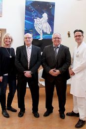 Seit mittlerweile 25 Jahren unterstützt der Sterntaler Hilfeverein die Klinik für Kinder- und Jugendmedizin des Klinikums Hanau. Der Chefarzt der Klinik für Kinder- und Jugendmedizin, Dr. med. Winfried Krill und die Bereichsleitung der Pflege, Martina Wichels, freuten sich auch in diesem Jahr sehr über das Engagement und die dazugehörige Spende des Hanauer Unternehmens. Mit dem Geld können jetzt wieder neue Anschaffungen für die Klinik für Kinder- und Jugendmedizin realisiert werden. Nach der offiziellen Scheckübergabe führte Martina Wichels die beiden Unternehmensvertreter noch durch die Kinderambulanz der Kinderklinik, um zu zeigen, welche Projekte sie mit ihrer Spende unterstützen.