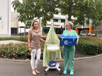 „Der Abschied ist extrem wichtig für die Trauerbewältigung. Leider ist die Zeit dafür sehr begrenzt, denn der kleine Körper muss zum Kühlen in die Prosektur gebracht werden“, erklärt Anne Schneider, Pflegefachkraft auf der Frühgeborenen-Intensivstation, die sich auf die Palliativpflege spezialisiert hat. Um trauernden Eltern so viel Zeit wie möglich mit ihrem verstorbenen Kind zu geben, hat das Eltern-Kind-Zentrum des Klinikums jetzt mit der Unterstützung des Fördervereins Sterntaler e.V. einen CuddleCot angeschafft. Das mobile Kühlsystem für Sternenkinder, zwischen der ca. 16. SSW bis zum Alter von einem Jahr, besteht aus einer weichen Matte, die unter Berücksichtigung der Umgebungstemperatur von einem Kühlaggregat auf die richtige Temperatur gebracht wird. Das Sternenkind wird auf die Matte gelegt und der Körper dadurch schonend gekühlt. Mit einem speziellen Bettchen, das durch einen blickdichten Vorhang vor neugierigen Blicken schützt, können Pflegekräfte das verstorbene Kind vom Kreißsaal direkt auf die Station in das Zimmer der Mutter bringen, sofern sie dies wünscht. Dort können sich Eltern und Angehörige ungestört in geschützter Atmosphäre verabschieden, dafür können sie sich bis zu 36 Stunden Zeit nehmen und ihr Kind auch über Nacht bei sich haben. Der Körper muss nicht zwischendurch zur Kühlung weggebracht werden, was oft eine zusätzliche seelische Belastung darstellt.