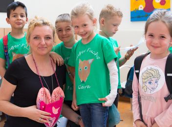 Das Vorschuljahr im Klecksehaus ist in verschiedene Projektmodule gegliedert, die jeweils unterschiedliche Fähigkeiten der Kinder fördern und sie auf den Schulstart vorbereiten sollen. Eine davon ist die soziale Kompetenz. „Dieses Jahr stand das Projekt unter dem Motto ‚Glück schenken‘. Die Ausgestaltung und Organisation beruht dabei immer auf den Ideen der Kinder, die sich das ganze Jahr über sehr aktiv eingebracht haben“, erklärt Natalie Graf-Bobrovsky, die zusammen mit Waltraud Hoffmann die Vorschulgruppe der KiTa betreut.