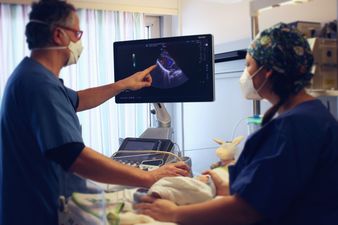 Ableitung der elektrischen Herzaktion zur Aufklärung von Störungen der Herzaktivität. Ein Elektrokardiogramm kann die Herztöne des Neugeborenen aufzeichnen.